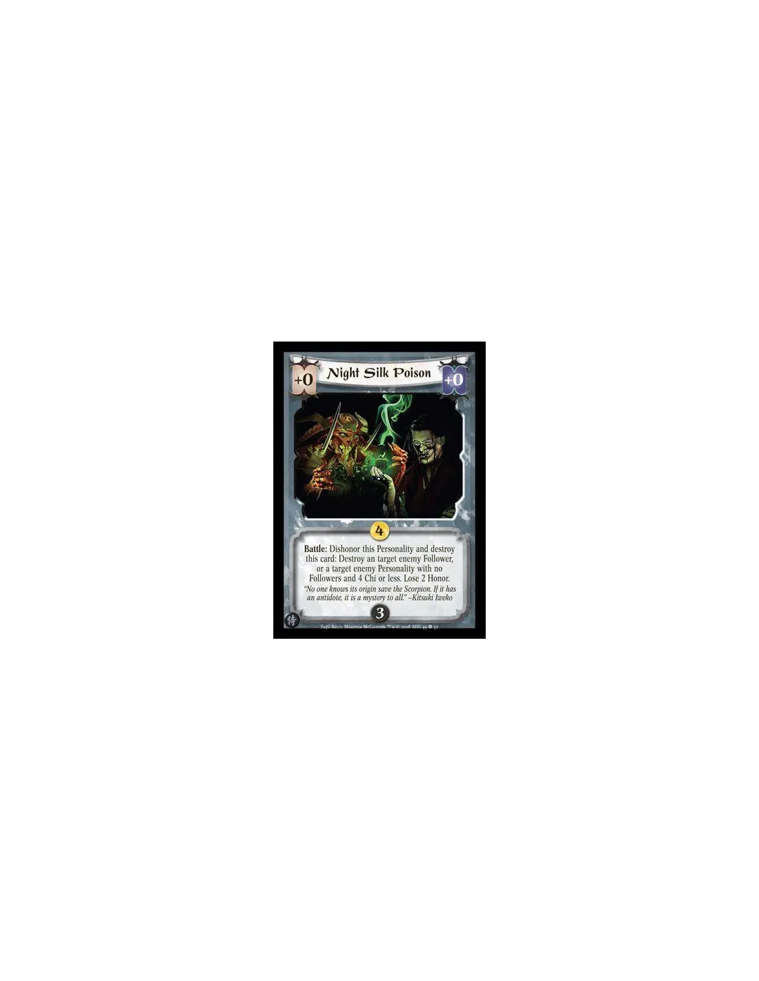 Battle: Dishonor this Personality and destroy this card: Destroy an target enemy Follower, or a target enemy Personality with no Followers and 4 Chi or less. Lose 2 Honor.