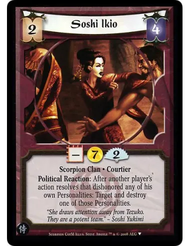 Scorpion Clan • Courtier Political Reaction: After another player's action resolves that dishonored any of his own Personalities: Target and destroy one of those Personalities.