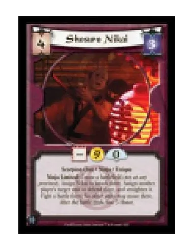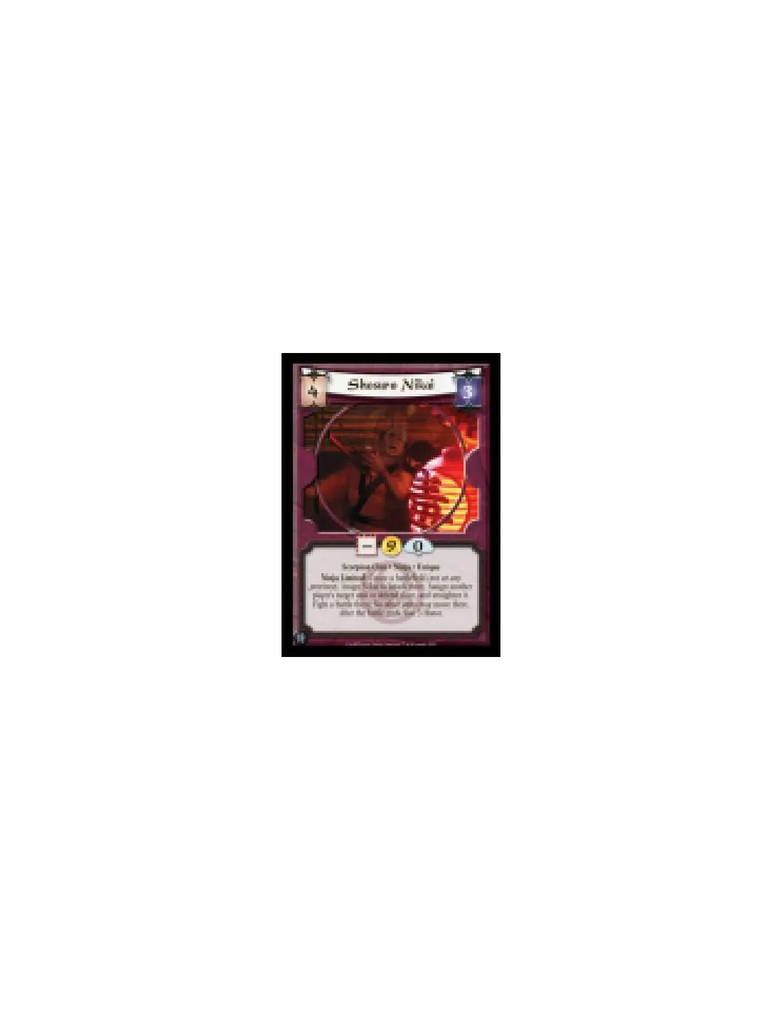 Scorpion Clan • Ninja • Unique Ninja Limited: Create a battlefield (not at any province). Assign Nikai to attack there. Assign another player's target unit to defend there, and straighten it. Fight a battle there. No other units may move there. After the battle ends, lose 3 Honor.