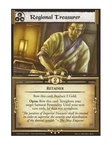 Retainer Bow this card: Produce 2 Gold. Open: Bow this card: Straighten your target Samurai Personality. Until your next turn ends, he does not straighten.