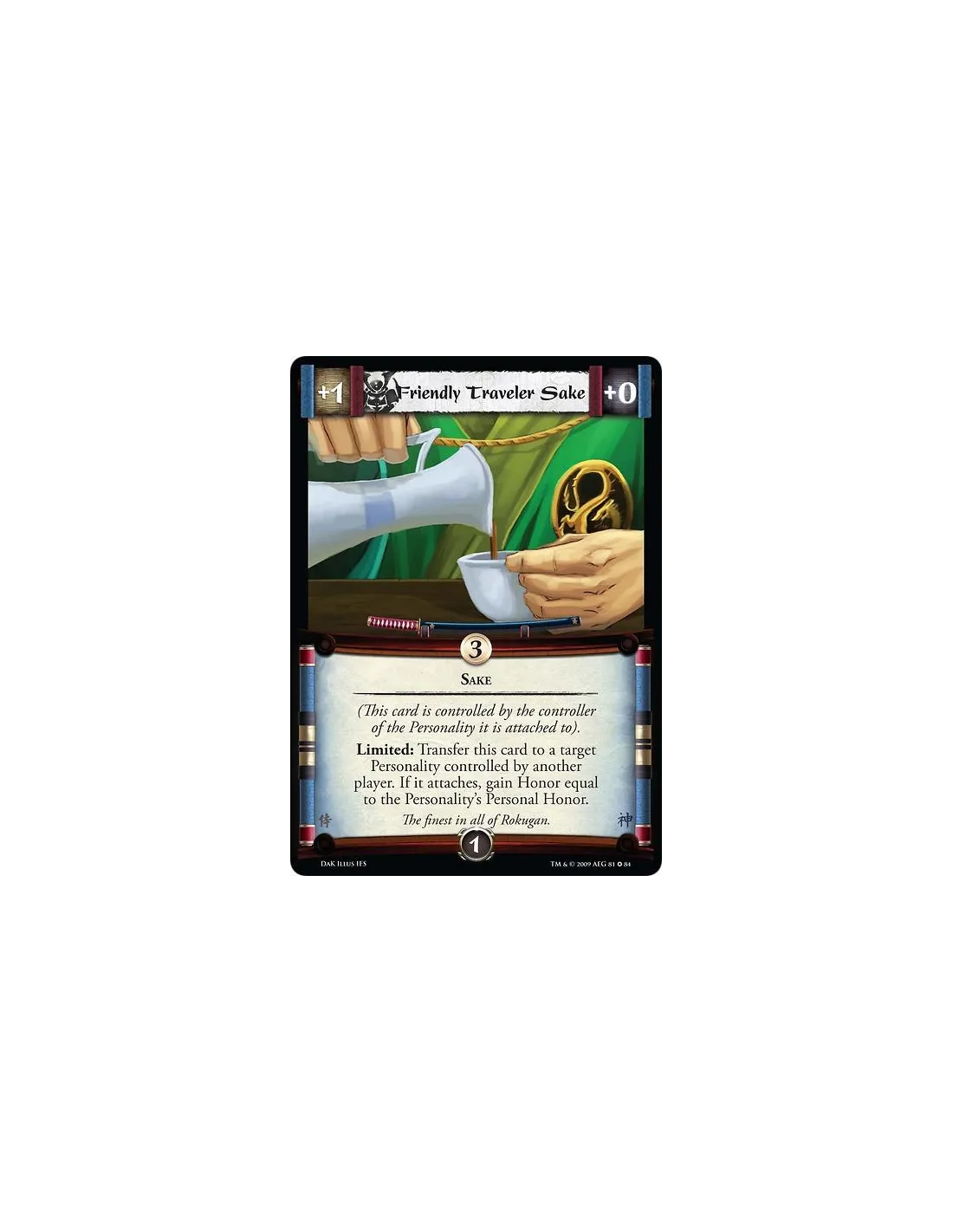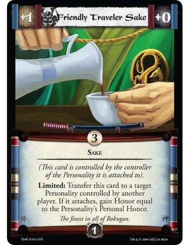 Sake (This card is controlled by the controller of the Personality it is attached to). Limited: Transfer this card to a target Personality controlled by another player. It if attaches, gain Honor equal to the Personality's Personal Honor.