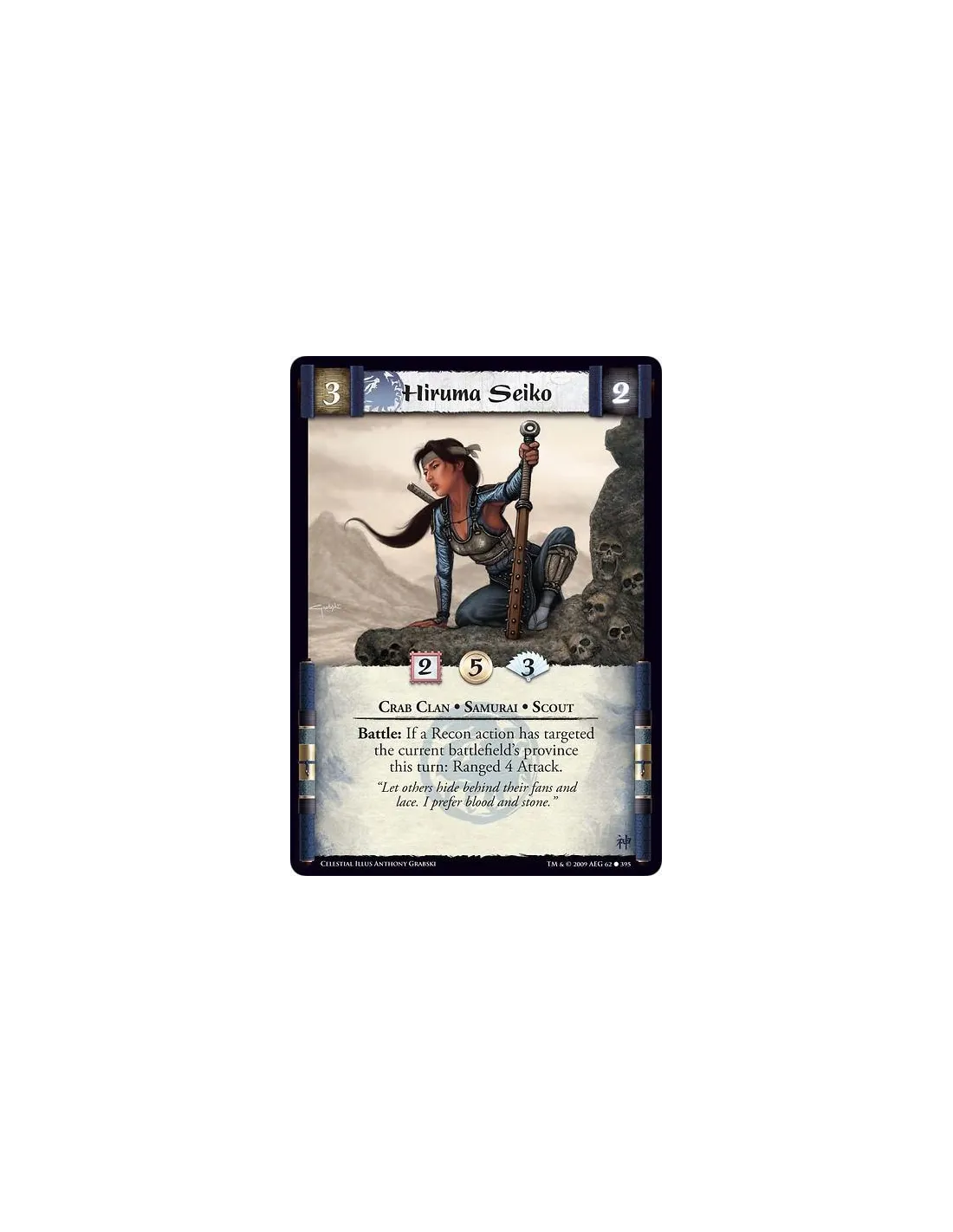 Crab Clan • Samurai • Scout Battle: If a Recon action has targeted the current battlefield’s province this turn: Ranged 4 Attack.