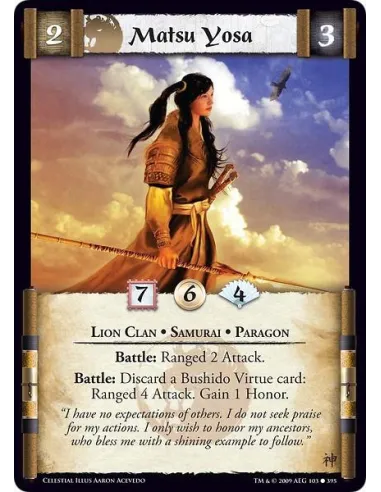 Lion Clan • Samurai • Paragon Battle: Ranged 2 Attack. Battle: Discard a Bushido Virtue card: Ranged 4 Attack. Gain 1 Honor.