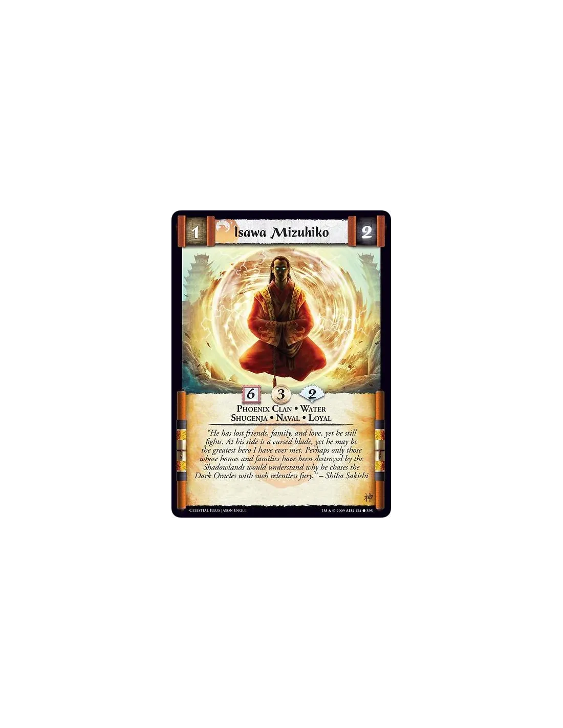 He has lost friends, family, and love, yet he still fights. At his side is a cursed blade, yet he may be the greatest hero I have ever met. Perhaps only those whose homes and families have been destroyed by the Shadowlands would understand why he chases the Dark Oracles with such relentless fury.” - Shiba Sakishi