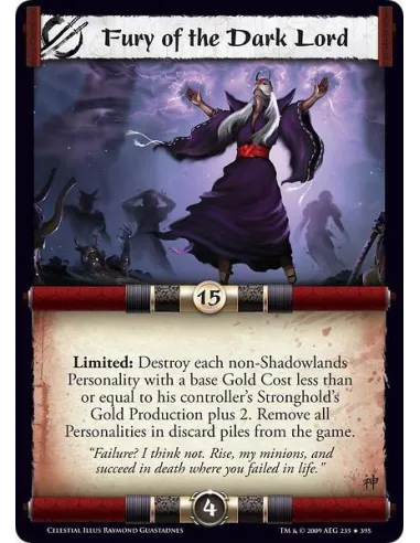 Limited: Destroy each non-Shadowlands Personality with a base Gold Cost less than or equal to his controller’s Stronghold’s Gold Production plus 2. Remove all Personalities in discard piles from the game.