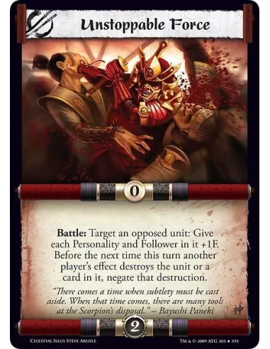 Battle: Target an opposed unit: Give each Personality and Follower in it +1F. Before the next time this turn another player’s effect destroys the unit or a card in it, negate that destruction.