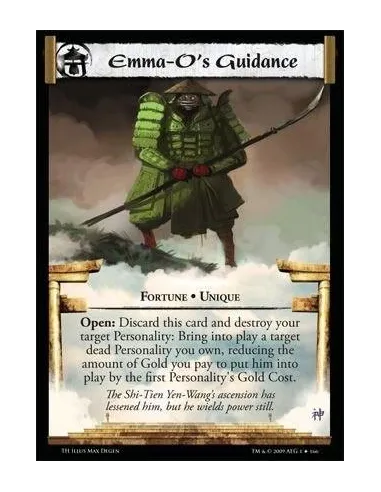 Fortune • Unique Open: Discard this card and destroy your target Personality: Bring into play a target dead Personality you own, paying an amount of Gold reduced by the first Personality’s Gold Cost.