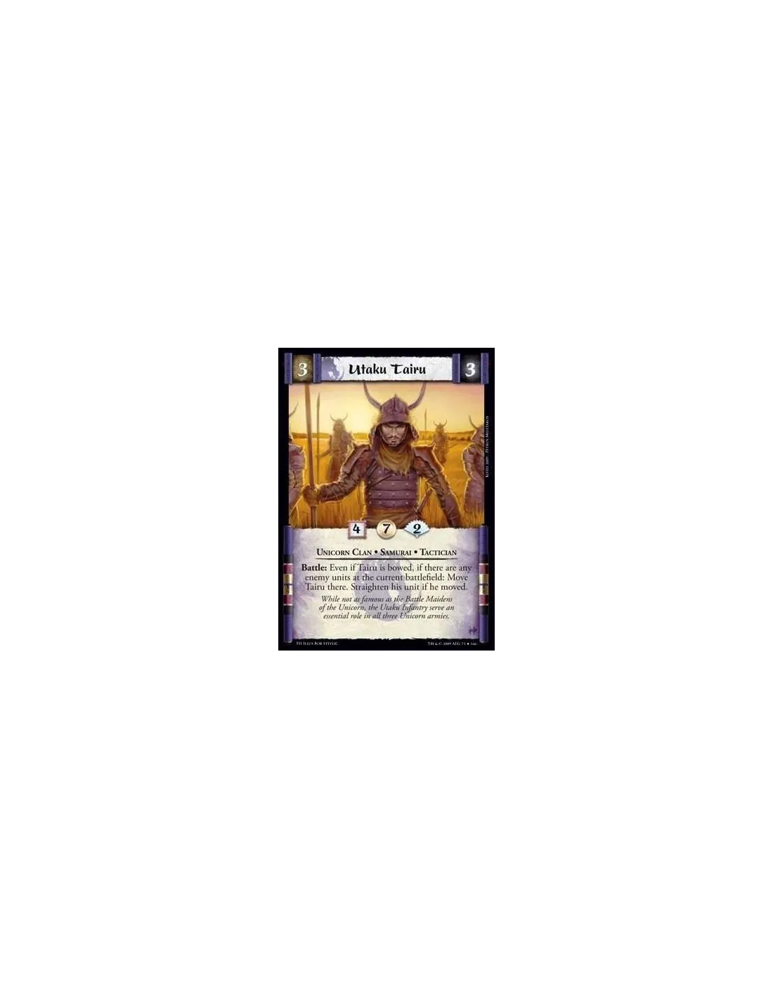 Unicorn Clan • Samurai • Tactician Battle: Even if Tairu is bowed, if there are any enemy units at the current battlefield: Move Tairu there. Straighten his unit if he moved.