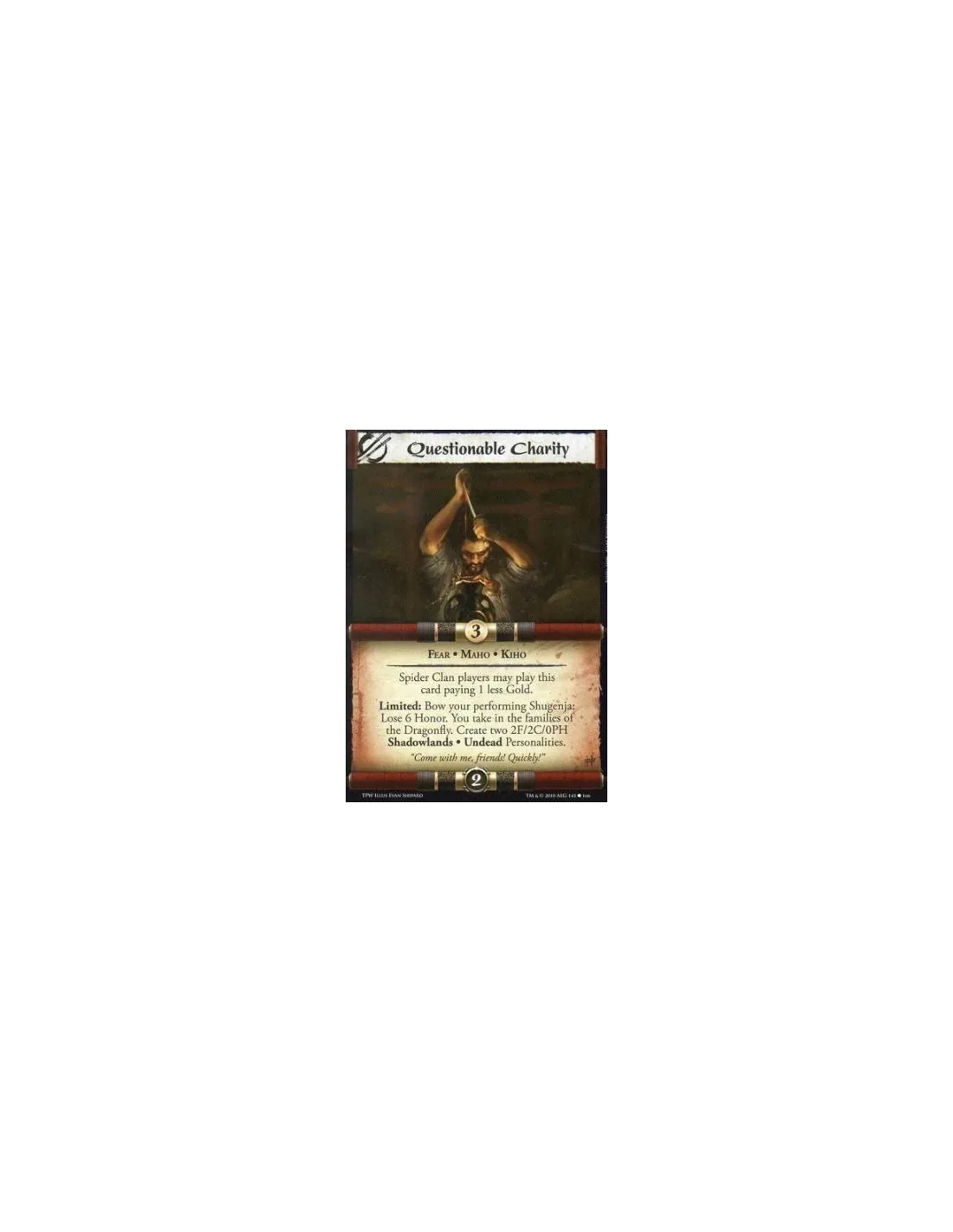Fear • Maho • Kiho Spider Clan players may play this card paying 1 less Gold.Limited: Bow your performing Shugenja: Lose 6 Honor. You take in the families of the Dragonfly. Create two 2F/2C/0PH Shadowlands • Undead Personalities.