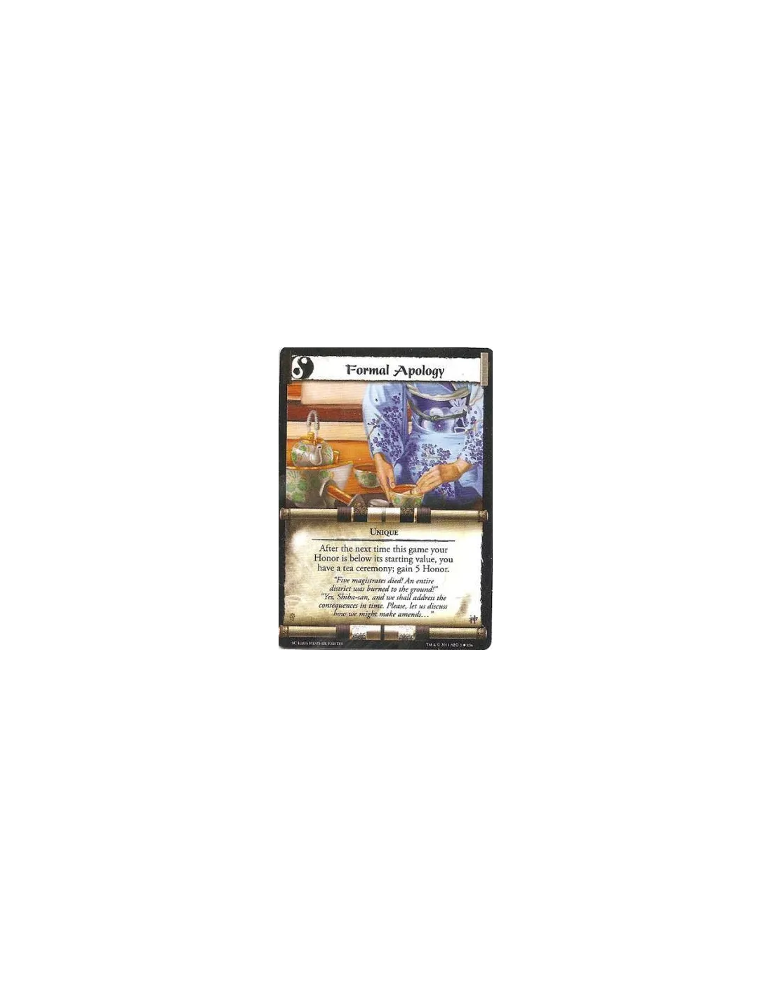 After the next time this game your Honor is below its starting value, you have a tea ceremony; gain 5 Honor.