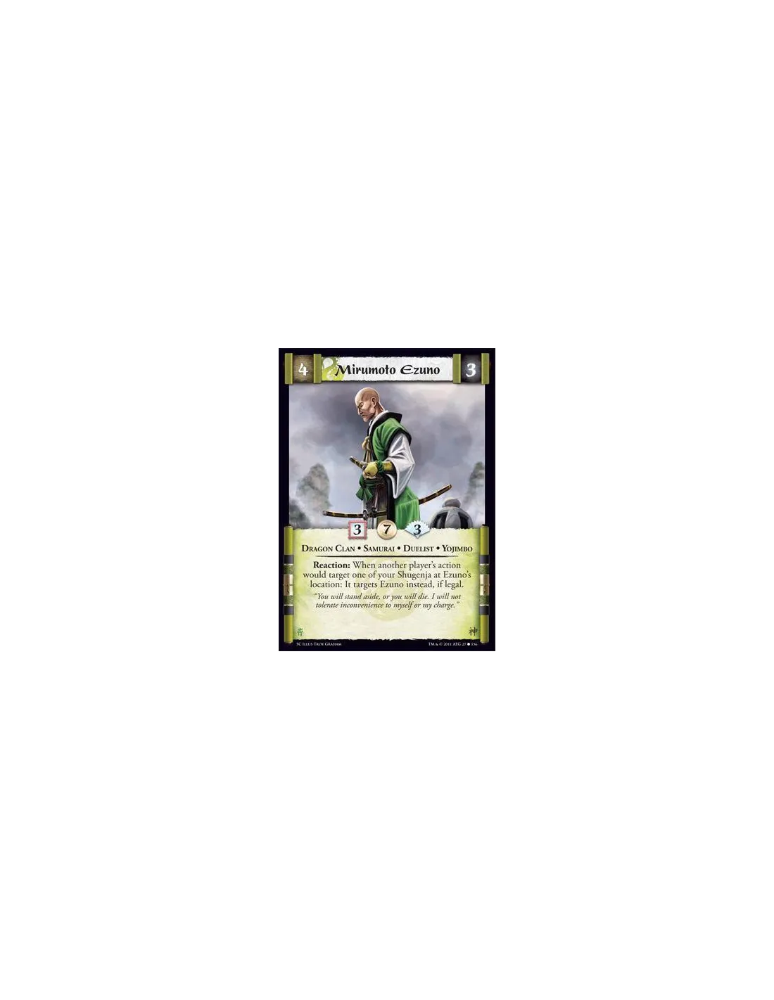 Reaction: When another player’s action would target one of your Shugenja at Ezuno’s location: It targets Ezuno instead, if legal.