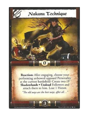 Reaction: After engaging, choose your performing unbowed opposed Personality at the current battlefield: Create two 1F Shadowlands • Undead Followers and attach them to him. Lose 1 Honor.