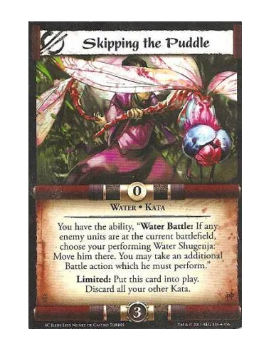 You have the ability, “Water Battle: If any enemy units are at the current battlefield, choose your performing Water Shugenja: Move him there. You may take an additional Battle action which he must perform.” Limited: Put this card into play. Discard all your other Kata.