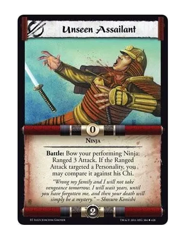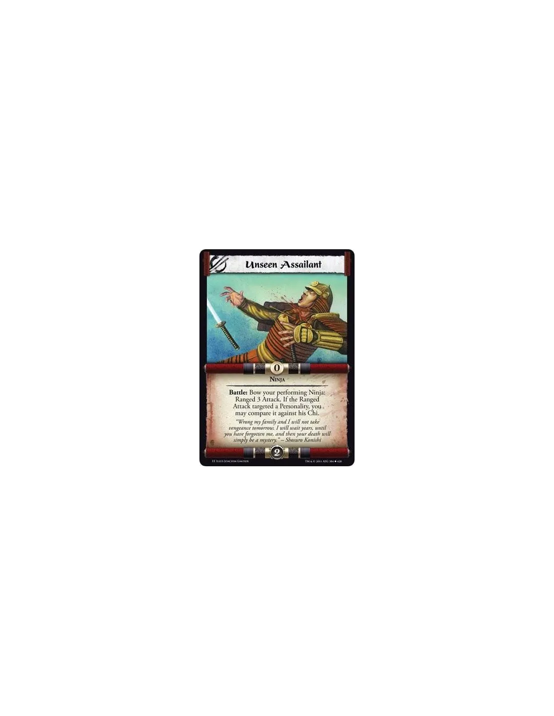 Battle: Bow your performing Ninja: Ranged 3 Attack. If the Ranged Attack targeted a Personality, you may compare it against his Chi.