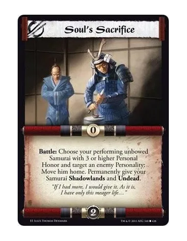 Battle: Choose your performing unbowed Samurai with 3 or higher Personal Honor and target an enemy Personality: Move him home. Permanently give your Samurai Shadowlands and Undead.