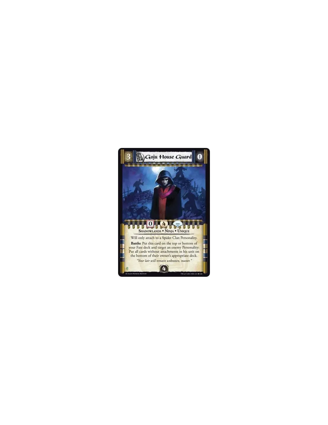 Will only attach to a Spider Clan Personality. Battle: Put this card on the top or bottom of your Fate deck and target an enemy Personality: Put all cards without attachments in his unit on the bottom of their owner’s appropriate deck.