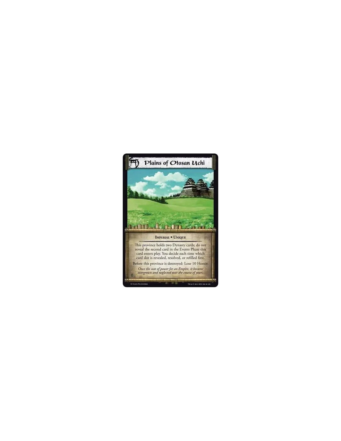 This province holds two Dynasty cards;do not reveal the second card in the Events Phase this card enters play. You decide each time wich card slot is revealed, resolved, or refilled first. Before this province is destroyed: Lose 10 Honor.
