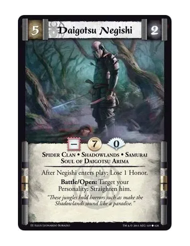 After Negishi enters play: Lose 1 Honor. Battle/Open: Target your Personality: Straighten him.