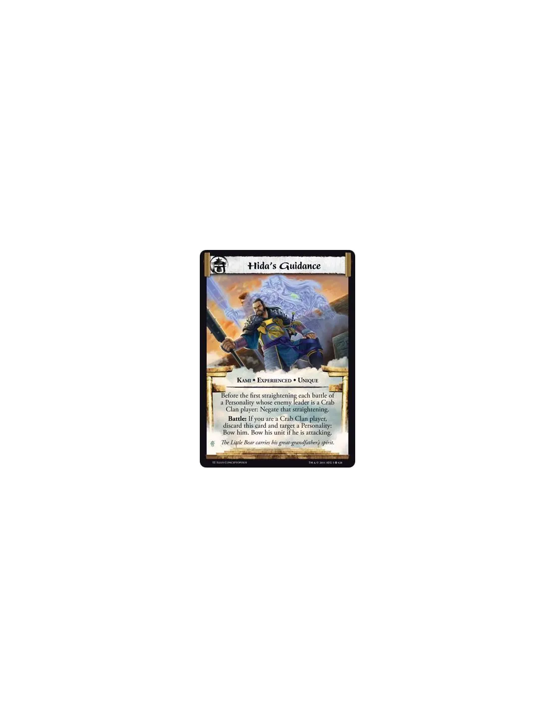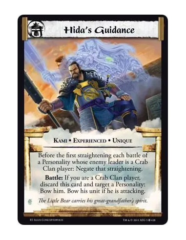 Before the first straightening each battle of a Personality whose controller’s enemy leader is a Crab Clan player: Negate that straightening. Battle: If you are a Crab Clan player, discard this card and target a Personality: Bow him. Bow his unit if he is attacking.