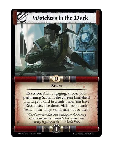 Reaction: After engaging, choose your performing Scout at the current battlefield and target a card in a unit there: You have Reconnaisance there. Abilities on cards (now) in the target's unit may not be used