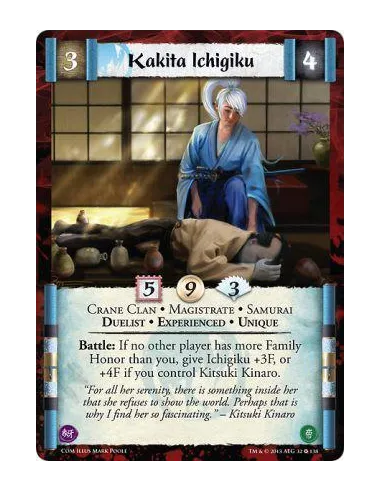 Battle: If no other player has more Family Honor than you, give Ichigiku +3F, or +4F if you control Kitsuki Kinaro.