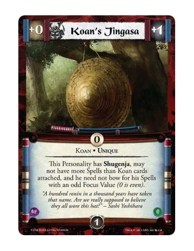 Koan • Unique This Personality has Shugenja, may not have more Spells than Koan cards attached, and he need not bow for his Spells with an odd Focus Value (0 is even).