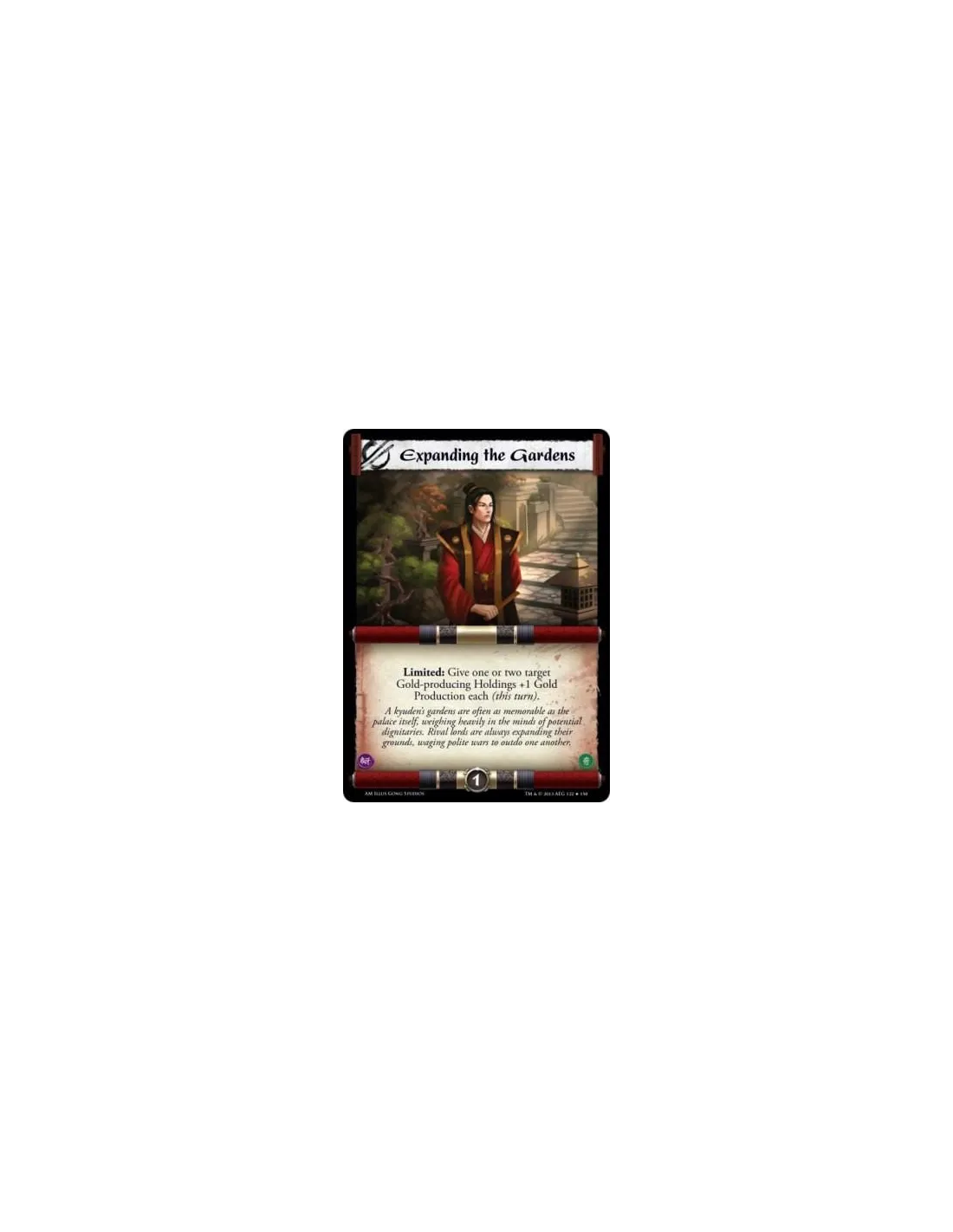 A kyuden's gardens are often as memorable as the palace itself, weighing heavily in the minds of potential dignitaries. Rival lords are always expanding their grounds, waging polite wars to outdo one another.