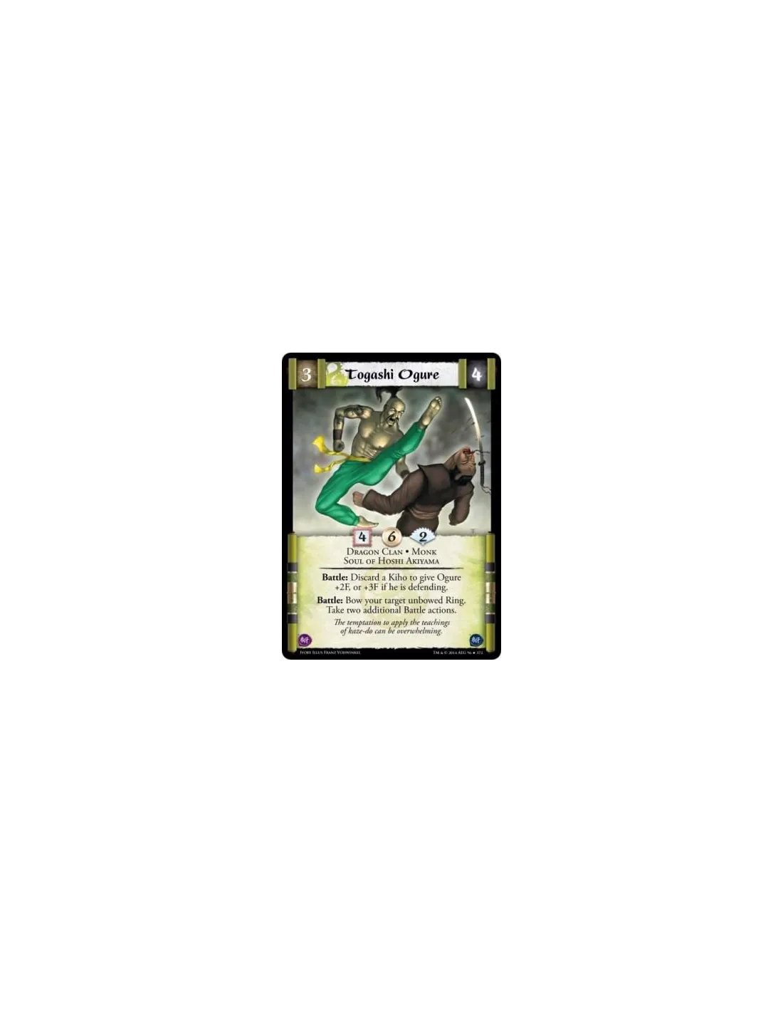 Battle: Discard a Kiho to give Ogure +2F, or +3F if he is defending.