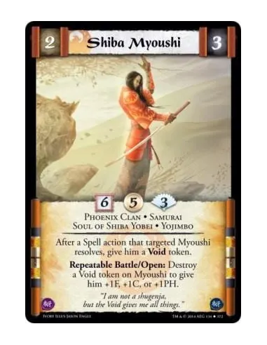 After a Spell action that targeted Myoushi resolves, give him a Void token.