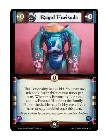 This Personality has +1PH. You may use rulebook Favor abilities two times per turn. When this Personality Lobbies, add his Personal Honor to the Family Honor check. He may Lobby even if you have already Lobbied once this turn.