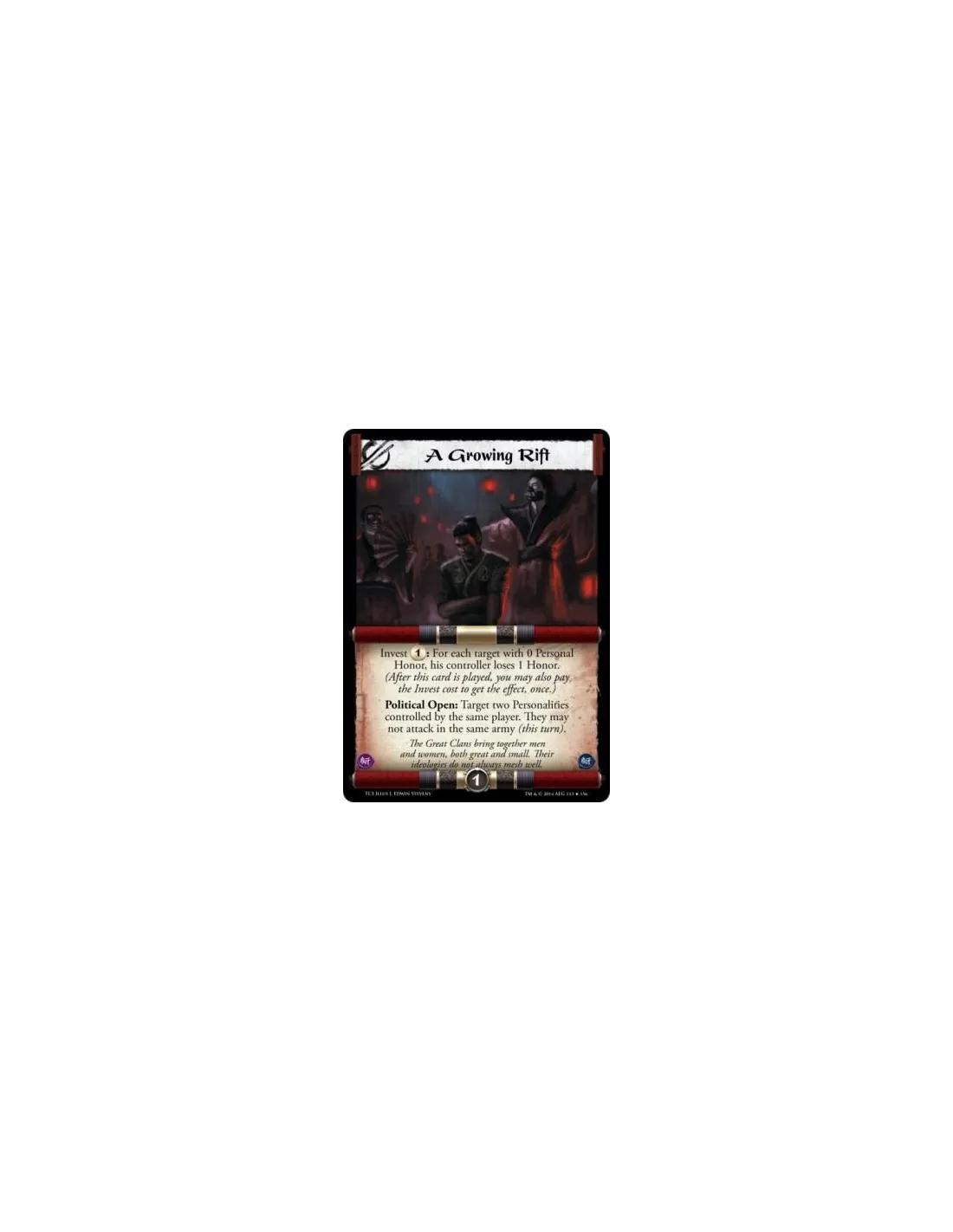 Invest 1: For each target with 0 Personal Honor, his controller loses 1 Honor. (After this card is played, you may also pay the Invest cost to get the effect, once.)
