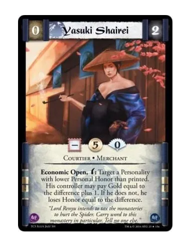 Economic Open, w: Target a Personality with lower Personal Honor than printed. His controller may pay Gold equal to the difference plus 1. If he does not, he loses Honor equal to the difference.