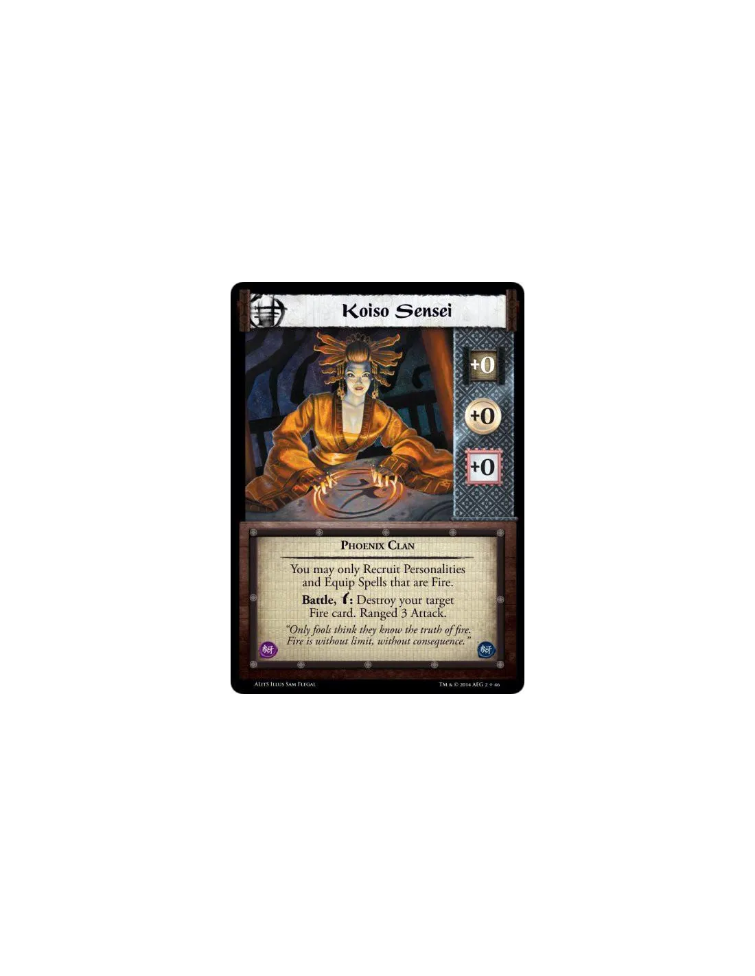 Battle, w: Destroy your target Fire card. Ranged 3 Attack.