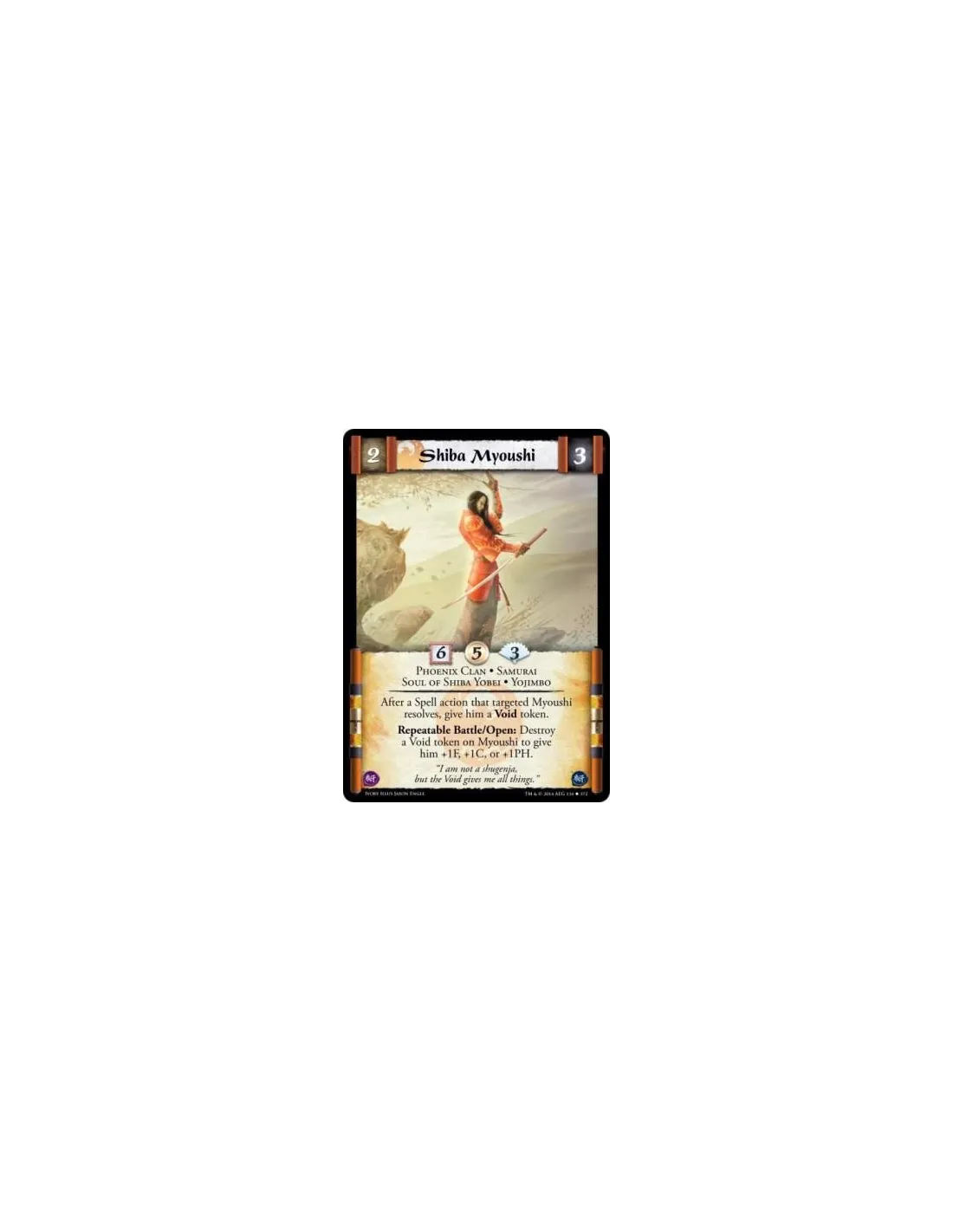 Repeatable Battle/Open: Destroy a Void token on Myoushi to give him +1F, +1C, or +1PH.