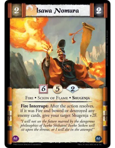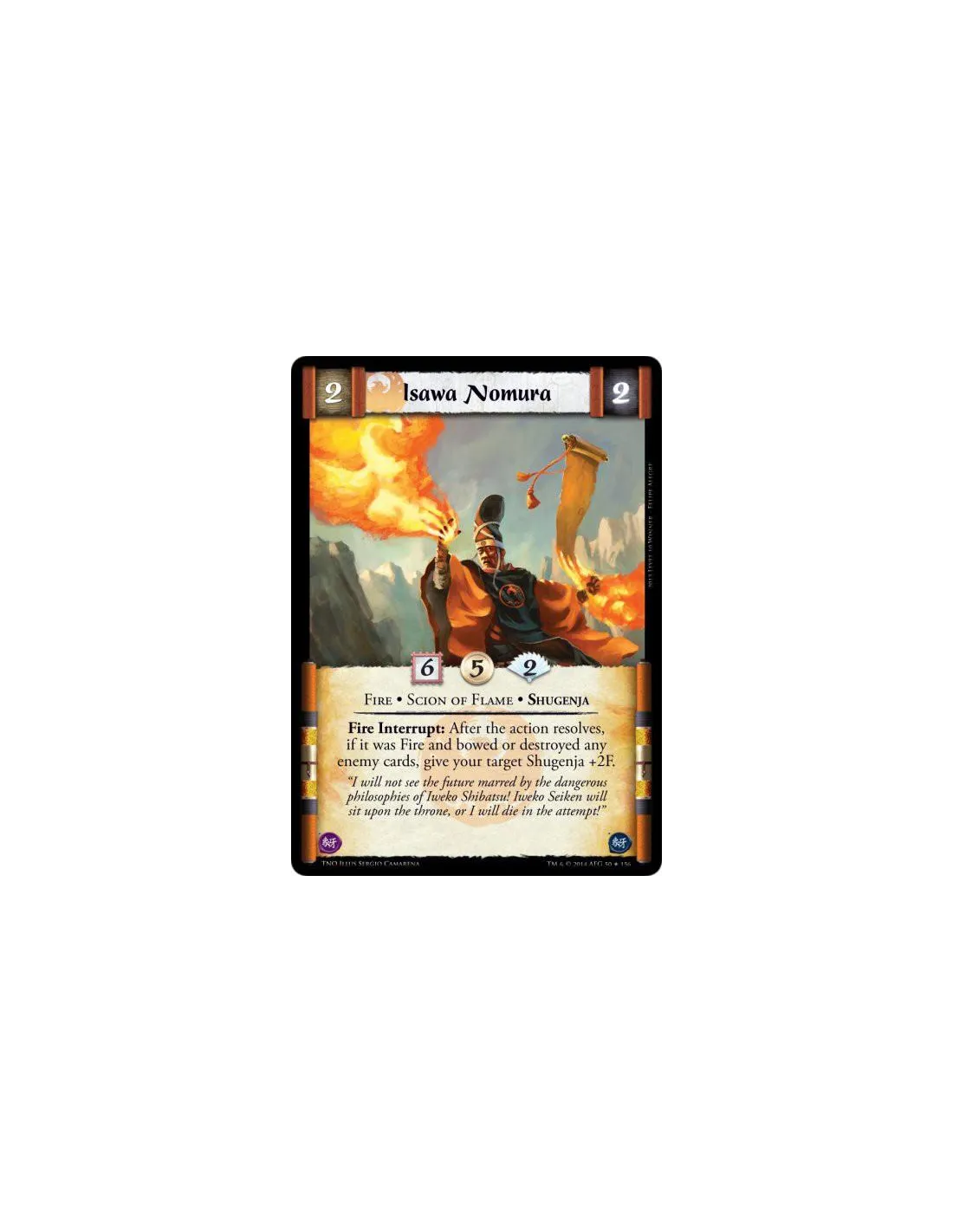 Fire Interrupt: After the action resolves, if it was Fire and bowed or destroyed any enemy cards, give your target Shugenja +2F.