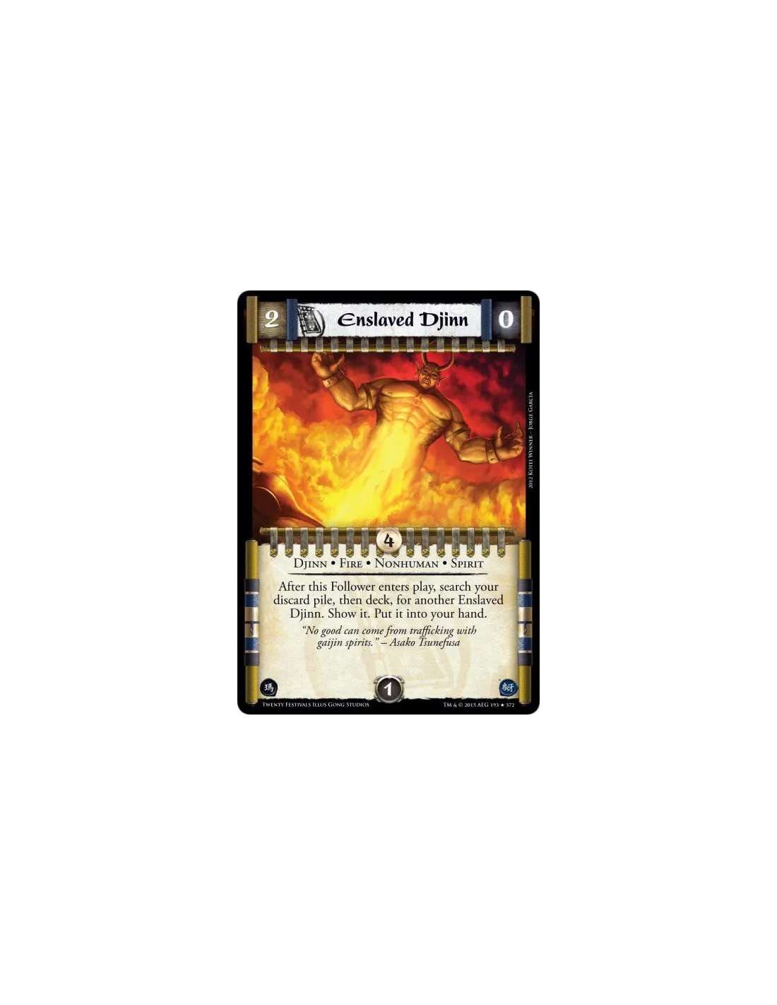 After this Follower enters play, search your discard pile, then deck, for another Enslaved Djinn. Show it. Put it into your hand.