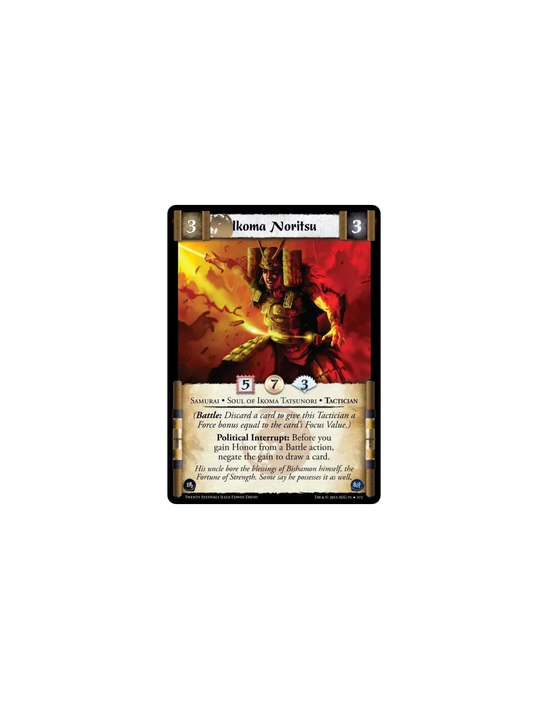 Political Interrupt: Before you gain Honor from a Battle action, negate the gain to draw a card.