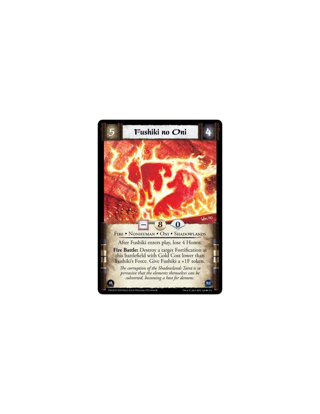 Fire Battle: Destroy a target Fortification at this battlefield with Gold Cost lower than Fushiki's Force. Give Fushiki a +1F token.