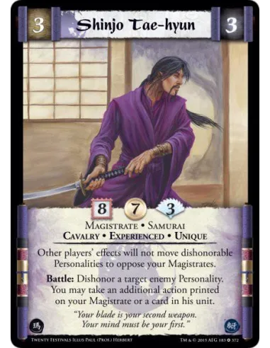 Battle: Dishonor a target enemy Personality. You may take an additional action printed on your Magistrate or a card in his unit.