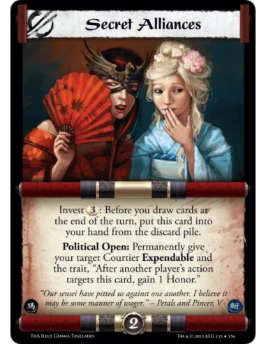 Political Open: Permanently give your target Courtier Expendable and the trait, "After another player's action targets this card, gain 1 Honor."
