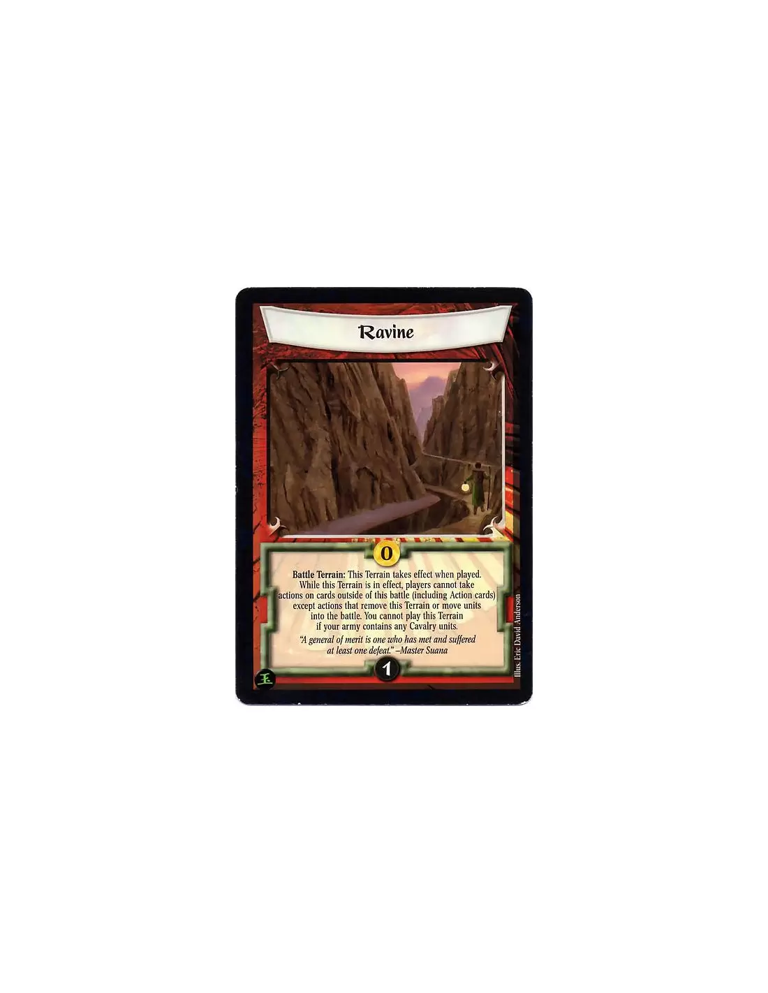 Battle Terrain: This terrain takes effect when played. While this terrain is in effect, players cannot take actions on cards outside of this battle (including Action cards) except actions that remove this terrain or move units into the battle. You cannot play this terrain if your army contains any cavalry units.