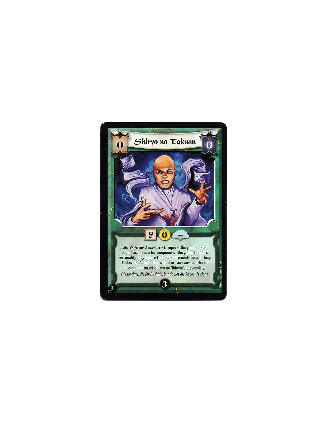 Toturi's Army Ancestor. Unique Shiryo no Takuan counts as Takuan for uniqueness. Shiryo no Takuan's Personality may ignore Honor requirements for attaching Followers. Actions that would or can cause an Honor loss cannot target Shiryo no Takuan's Personality.