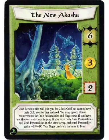 Crab personalities will join you for 2 less gold, but cannot have their Gold cost further reduced. You may ignore honor requirements for Crab Personalities and Naga cards, if you have no shadowlands cards in play. If you have both Crab Personalities and Naga Personalities in the same army, all such Personalities get +1F/+1C. Your Naga cards are immune to fear.