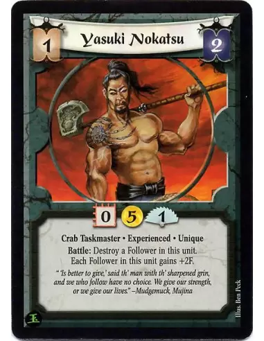 Crab Taskmaster. Experienced. Unique Battle: Destroy a Follower in this unit. Each Follower in this unit gains +2F.