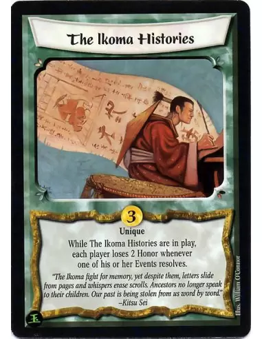 Unique While the Ikoma Histories are in play, each player loses 2 Honor whenever one of his or her Events resolves.