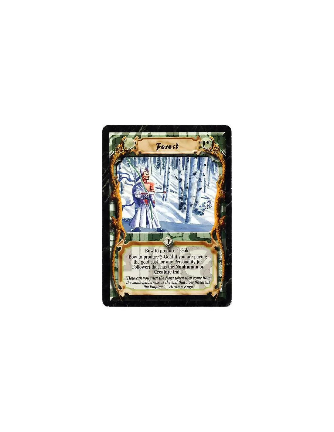 Bow the Forest to produce 1 Gold. Bow to produce 2 Gold if you are paying the gold cost for any nonhuman or creature Personalities or Followers. (Clarification: Both Personalities and Followers must have the Nonhuman or Creature trait for the extra gold.)