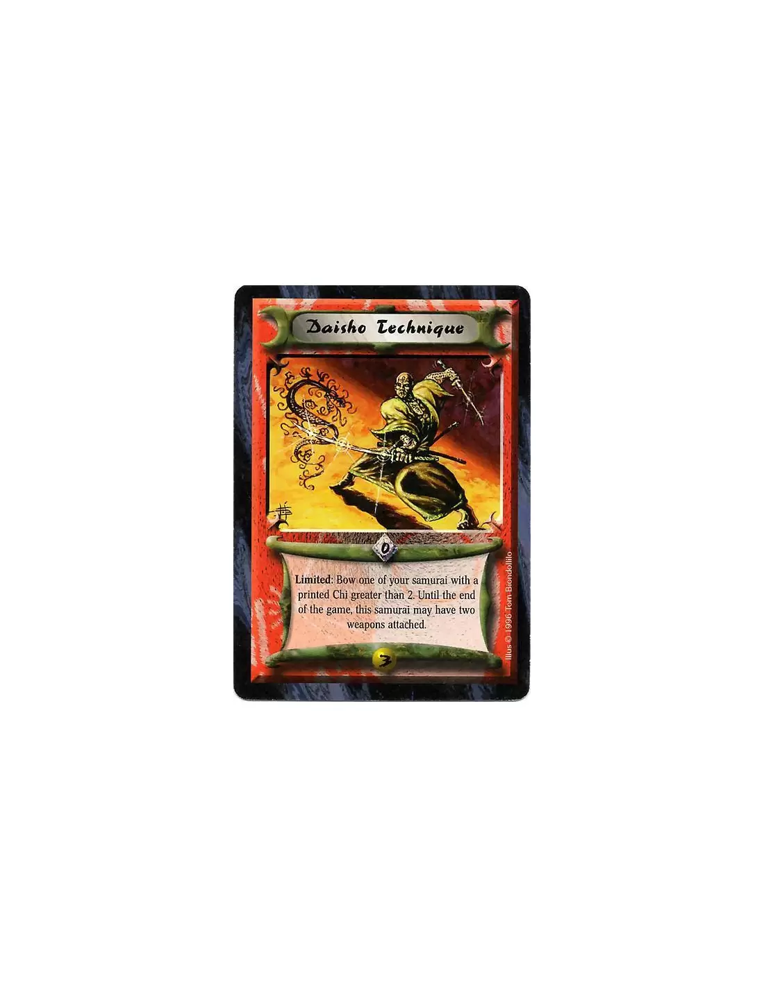Limited: Bow one of your samurai with a printed Chi greater than 2. Until the end of the game, this samurai may have two weapons attached.