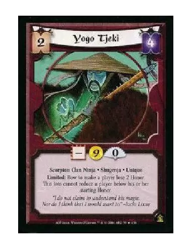 Scorpion Clan Ninja * Shugenja * Unique Limited: Bow Tjeki to make a player lose 2 Honor. This loss cannot lower a player below his starting Honor.