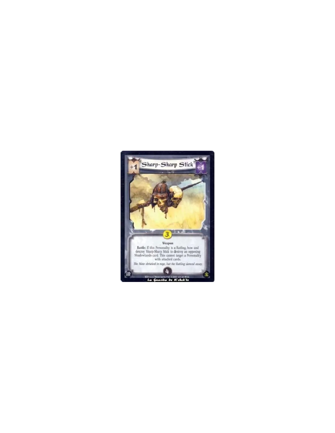 Weapon Battle: If this Personality is a Ratling, bow and destroy Sharp-Sharp Stick to destroy an opposing Shadowlands card. This cannot target a Personality with attached cards.