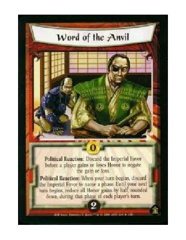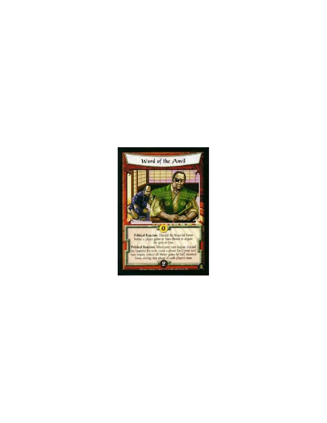 Poilitical Reaction: Discard the Imperial Favor before a player gains or loses Honor to negate that gain or loss. Political Reaction: When your turn begins, discard the Imperial Favor to name a phase. Until your next turn begins, reduca all Honor gains by half, rounded down, during that phase of each player's turn.